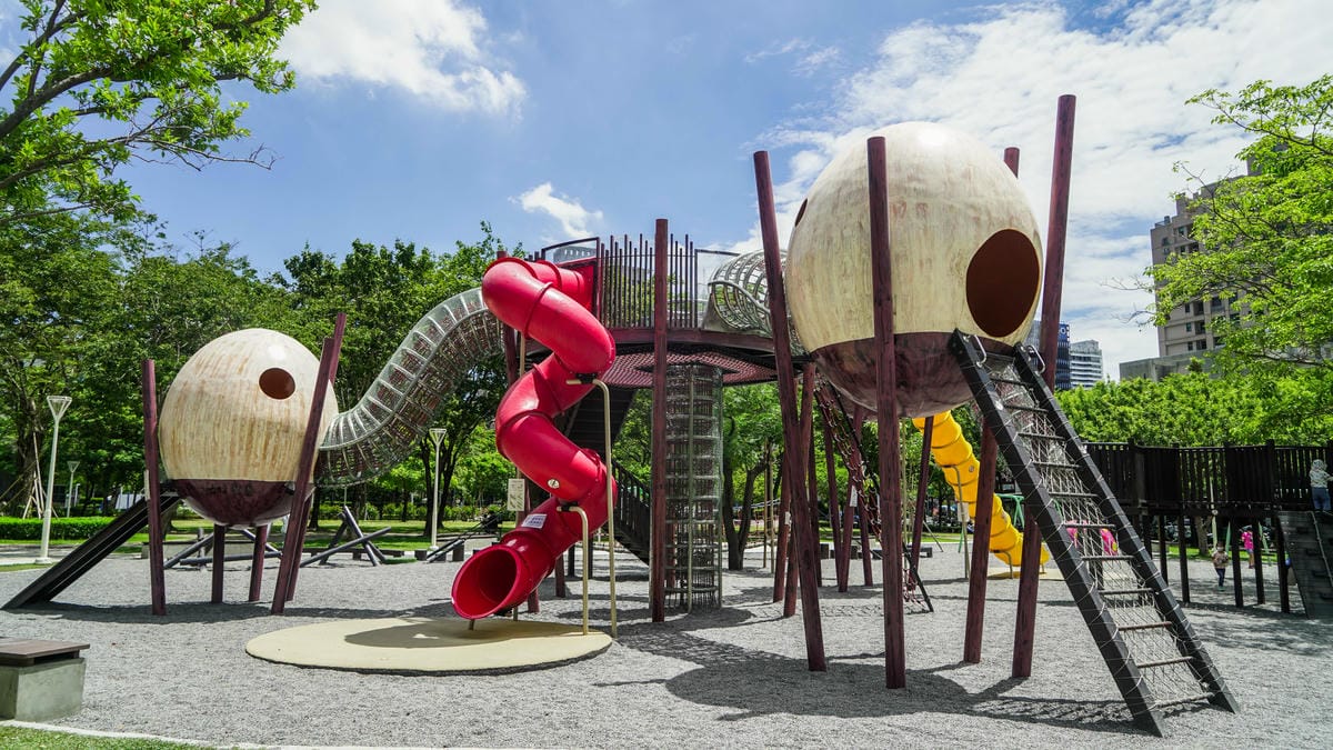 凹子底森林公園-鳥巢遊戲場 地址:高雄市鼓山區南屏路589號對面 周圍樹蔭多且有小黑蚊,遊戲場本身沒有遮蔽物超熱, 可攜帶野餐墊與大量降溫電風扇等,傍晚人多熱鬧,留意防疫。 有沙坑可攜帶玩沙設…